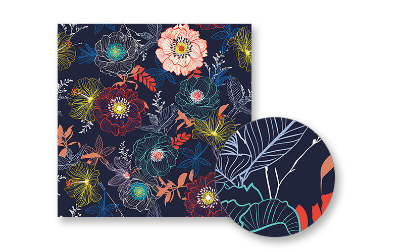 • Im Durchlicht exzellentes Dessinbild auf der unbedruckten Tuchunterseite
